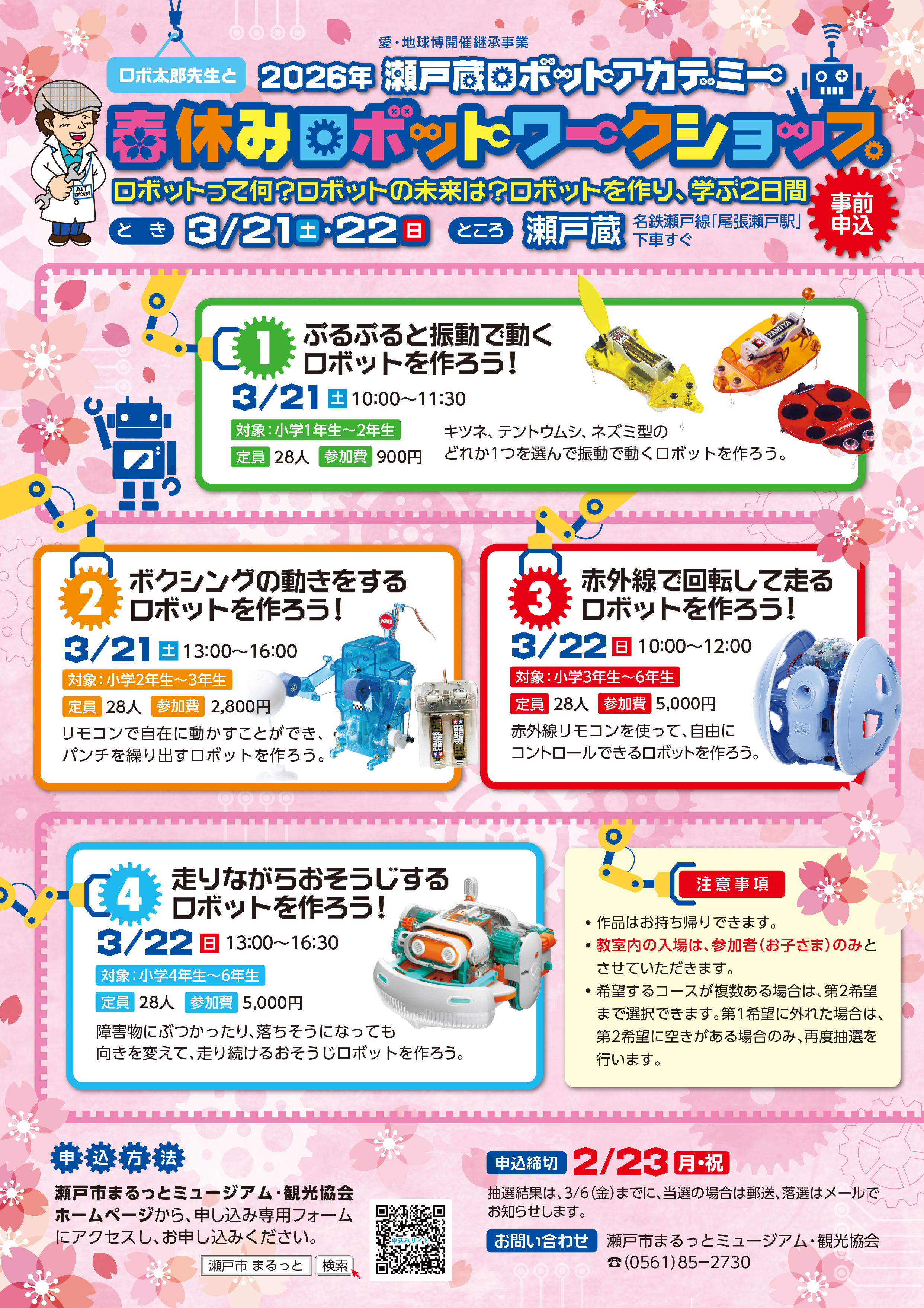 瀬戸蔵ロボットアカデミー「春休みロボットワークショップ」を開催します!