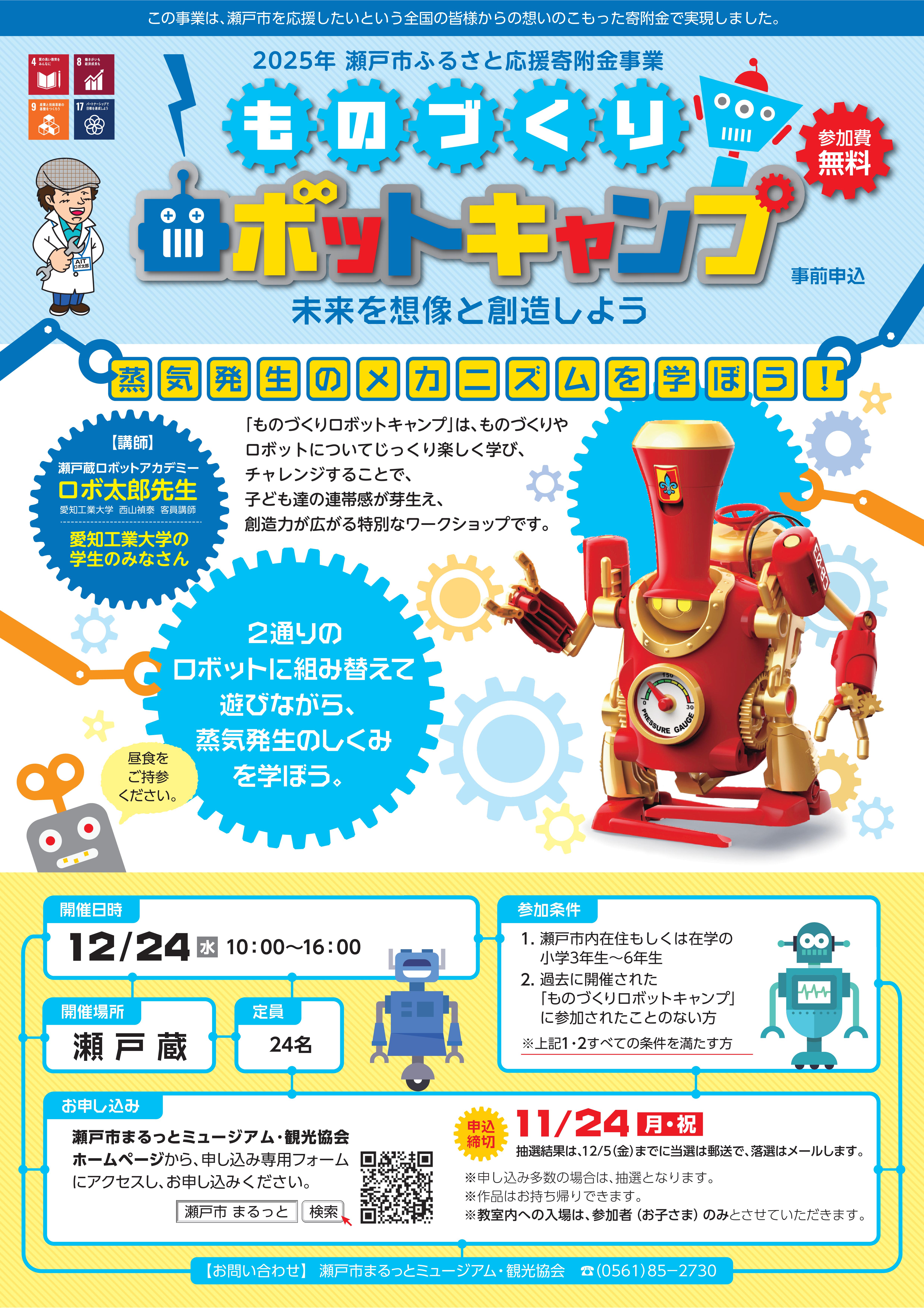 2025年 瀬戸市ふるさと応援寄附金事業「ものづくりロボットキャンプ」参加者募集
