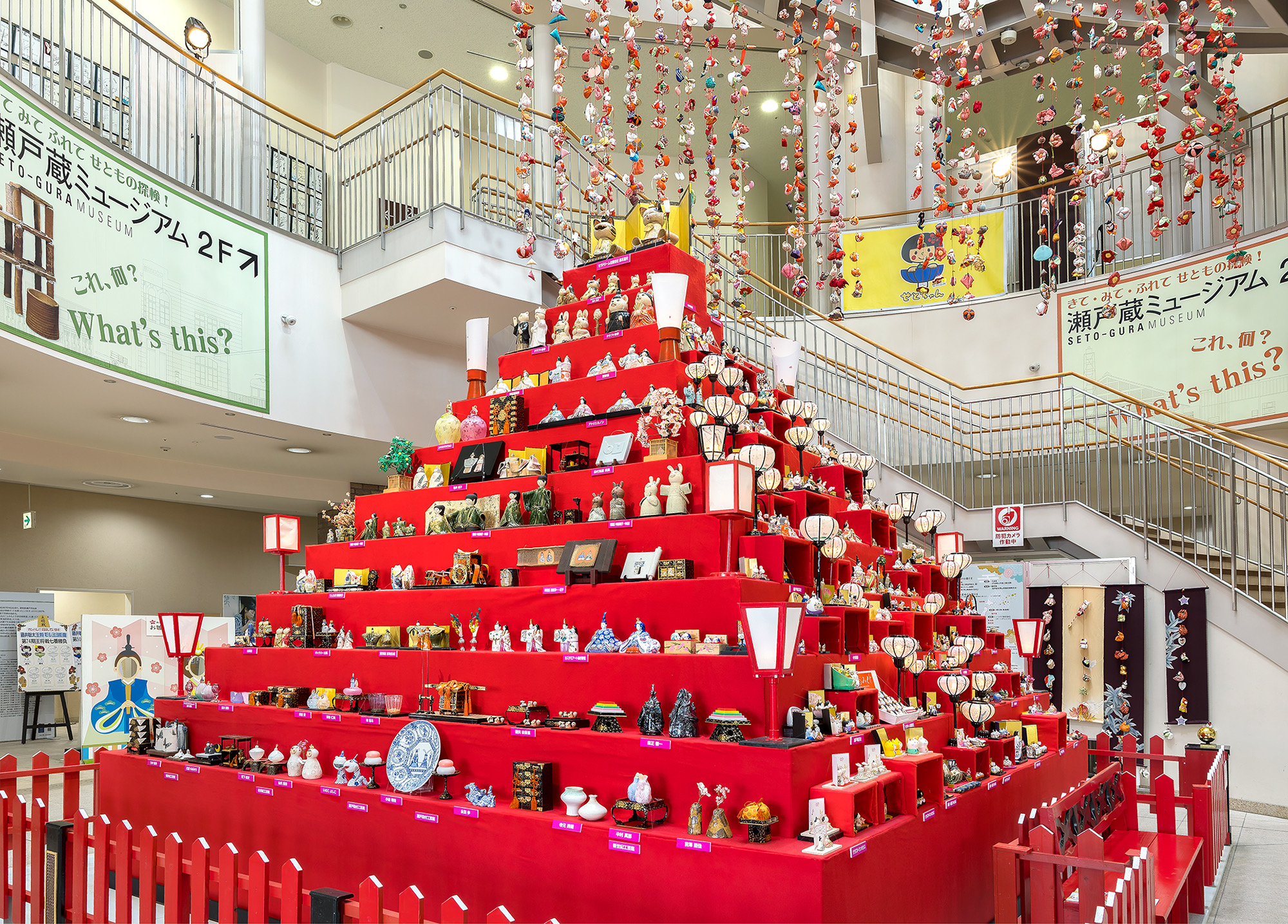 瀬戸市の街中をお雛さまが華やかに彩ります。 メイン会場の『瀬戸蔵』に登場する、高さ4mのピラミッド型巨大ひな壇「ひなミッド」に並んだ約800体の陶磁器・ガラスの創作雛は見ごたえ満点♪